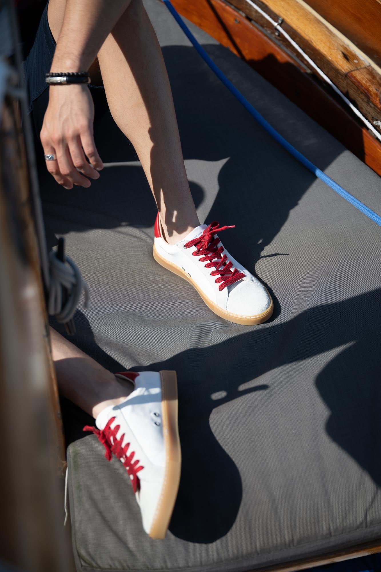 White sneaker for men by 8beaufort.Hamburg, made from recycled canvas, with inner lining made from vegetable and chrome-free tanned leather. The leather that we use for the lining comes from certified tanneries in Portugal.