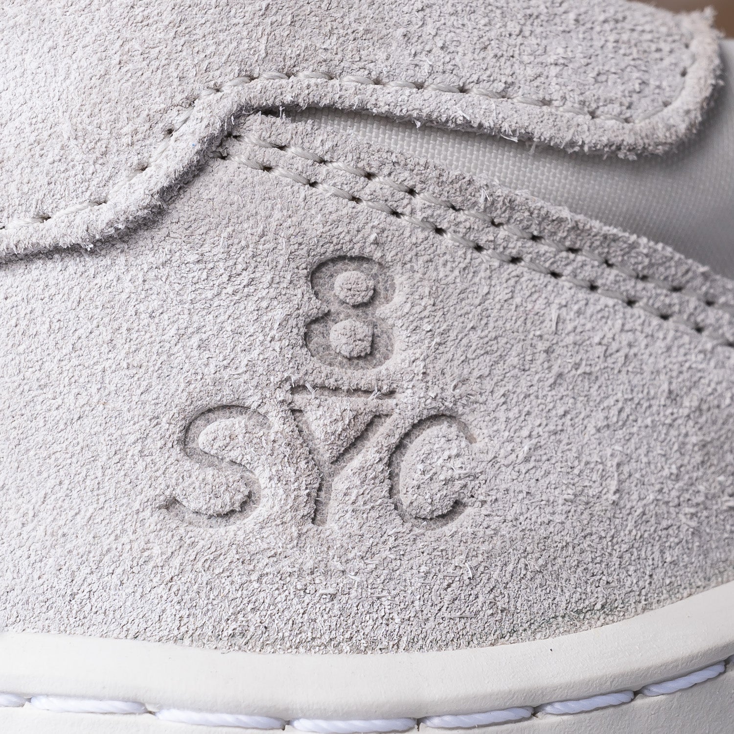 White sneaker for men by 8beaufort.Hamburg, made of recycled canvas, with details made of suede, upcycling of life jackets and a sole made of super soft natural rubber. Lining made of real chrome-free vegetable tanned leather.