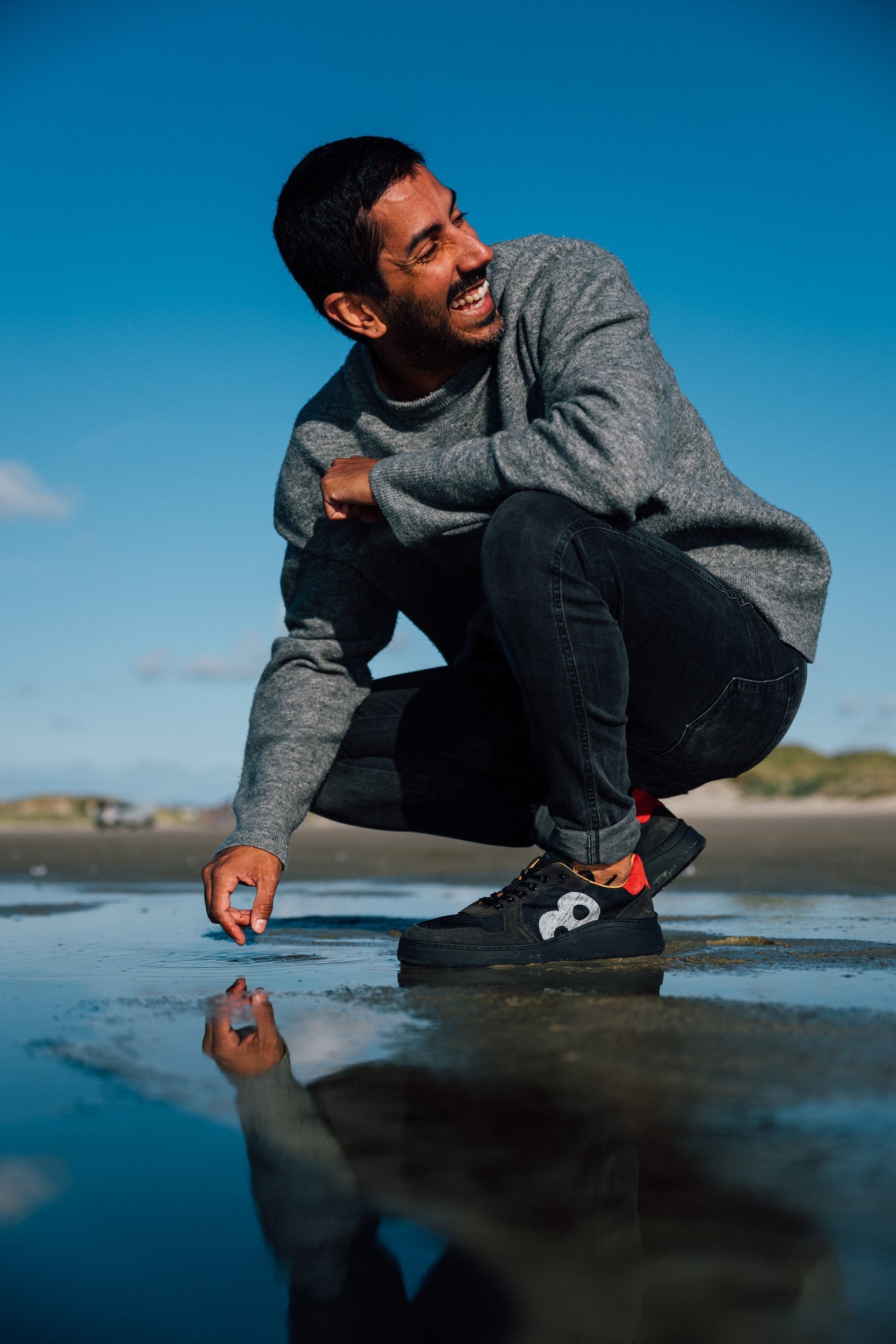 - Sole: natural rubber - Upper: Upcycled canvas, suede, upcycled life jacket - Insole: natural latex with chrome-free tanned leather