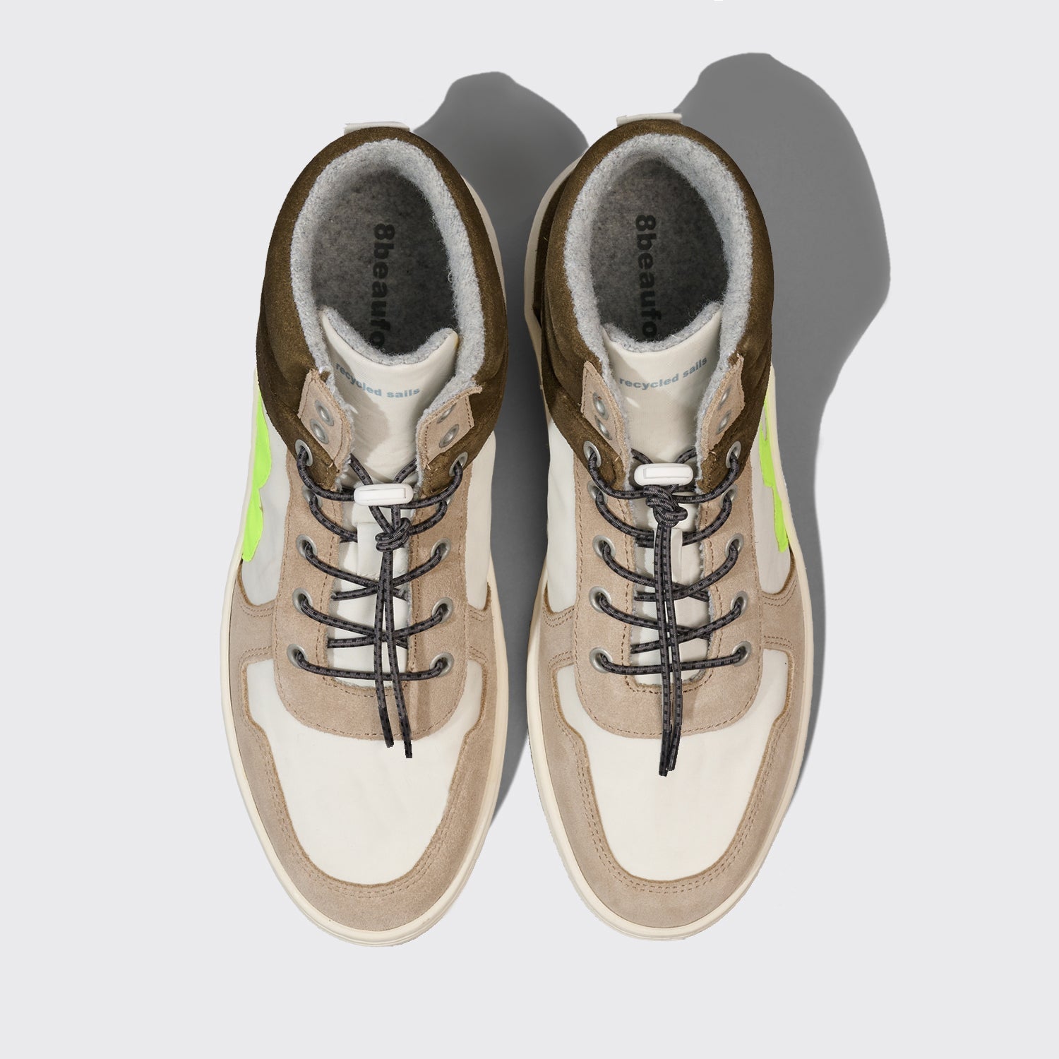 Die superflexible Sohle mit FSC zertifiziertem Naturkautschuk sorgt für den typischen 8beaufort.Hamburg Tragekomfort. Durch die flexiblen Schnürsenkel rutschst Du easy in den High Top rein und möchtest garantiert nicht mehr raus.