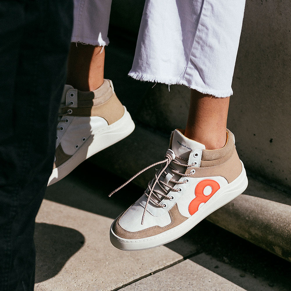 Die superflexible Sohle aus FSC zertifiziertem Naturkautschuk sorgt für den typischen 8beaufort.Hamburg Tragekomfort. Durch die flexiblen Schnürsenkel rutschst Du easy in den High Top rein und möchtest garantiert nicht mehr raus.