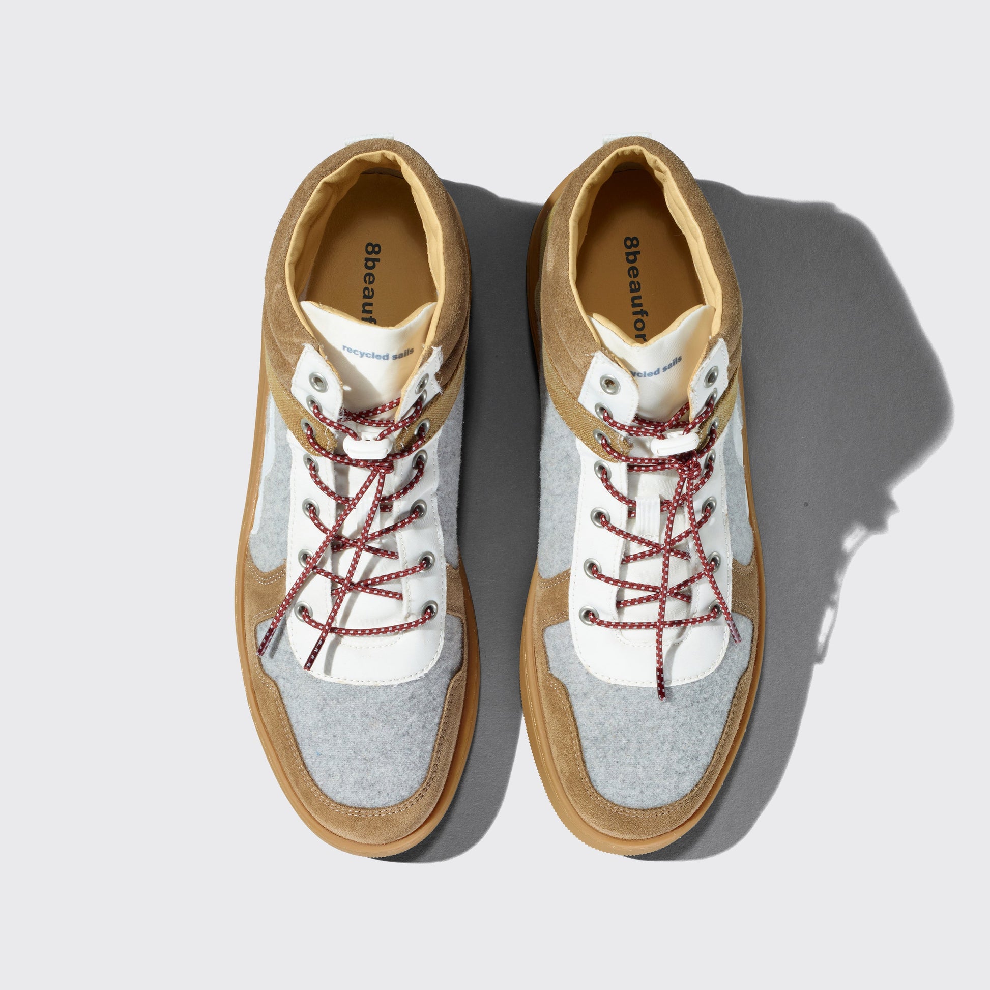 Der neue oak Merino von 8beaufort.Hamburg verbindet urbane nordische Coolness mit echter Funktion – und bringt damit ein ganz neues Sneakergefühl in den Winter. Mit recycelter Merinowolle und echtem Segeltuch wird er zum wärmsten Statement an Elbe und Alster.